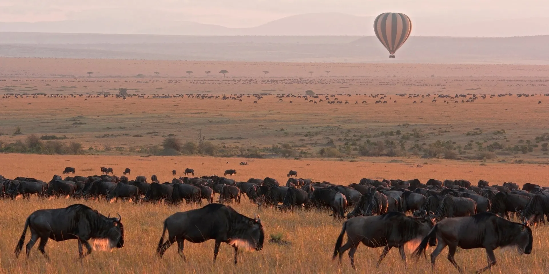 Opcional: podremos contratar un safari en globo al amanecer que nos permitirá descubrir las llanuras del Masái Mara desde otra perspectiva. La actividad incluye desayuno completo con champán o vino espumoso en medio de la sabana.