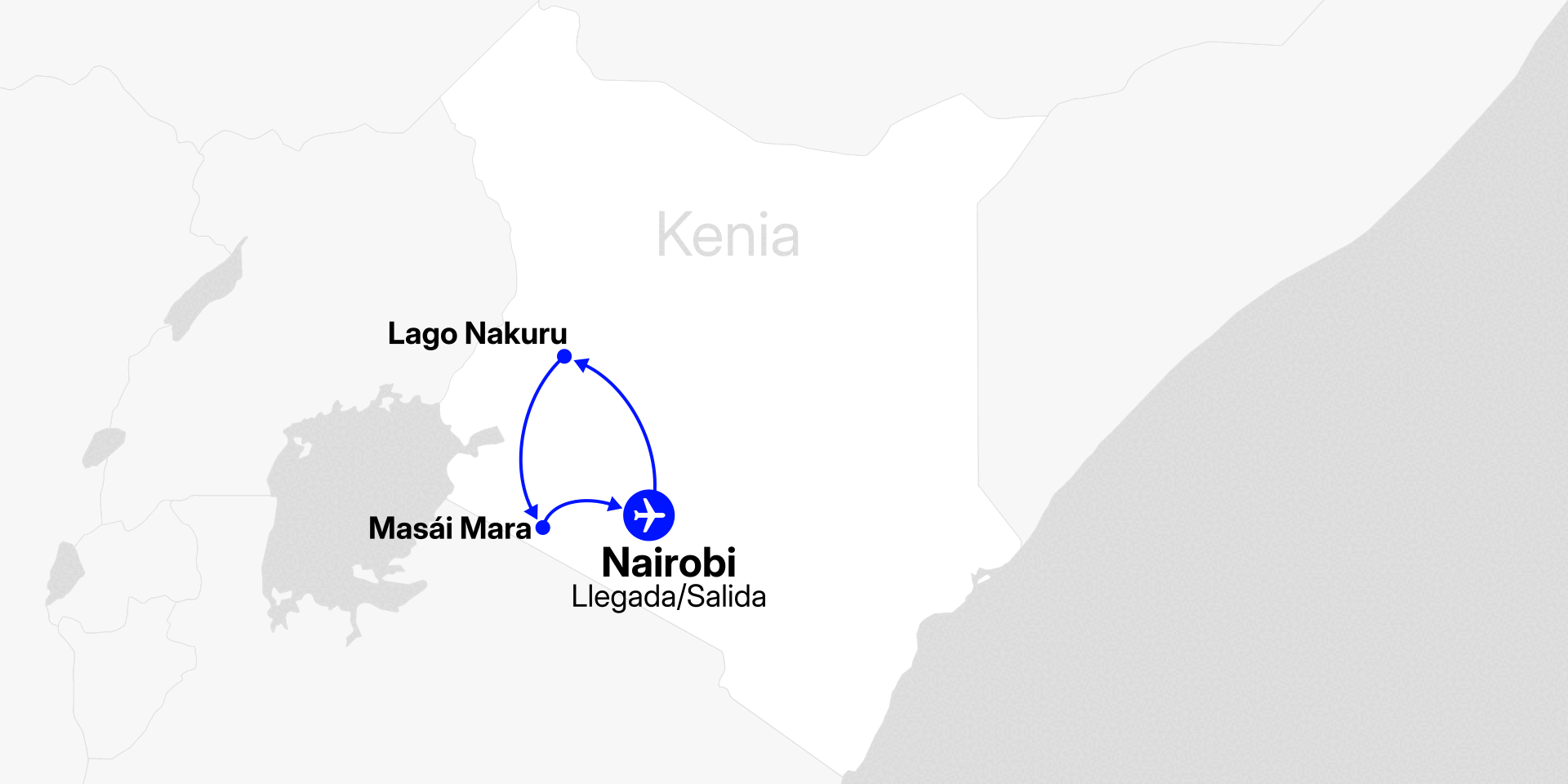 A la hora convenida, iniciaremos el traslado al aeropuerto de Nairobi, donde abordaremos el vuelo que nos llevará de regreso a la ciudad de origen.
