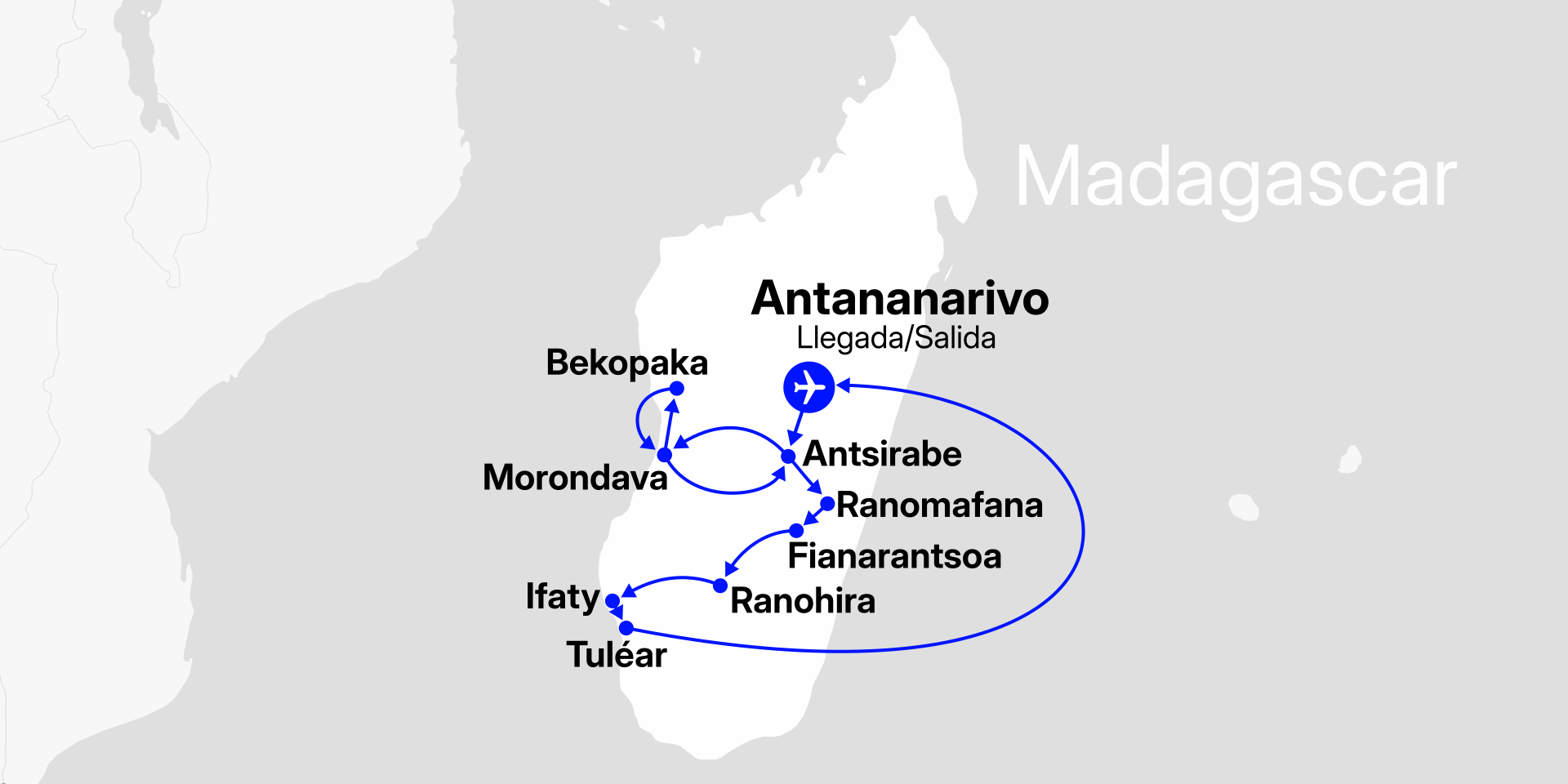 Nuestro viaje de 19 días a Madagascar empieza con nuestro vuelo a Antananarivo.