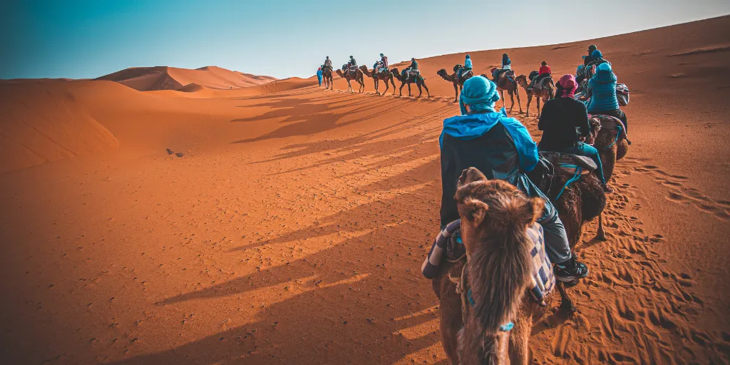 Por la tarde realizaremos una excursión en dromedario para observar la puesta de sol sobre las dunas. Al finalizar la actividad, cenaremos.