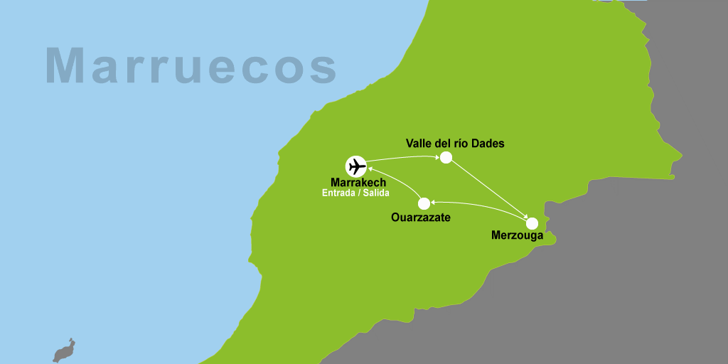 Marrakech - Valle del río Dades - Merzouga - Ouarzazate - Marrakech