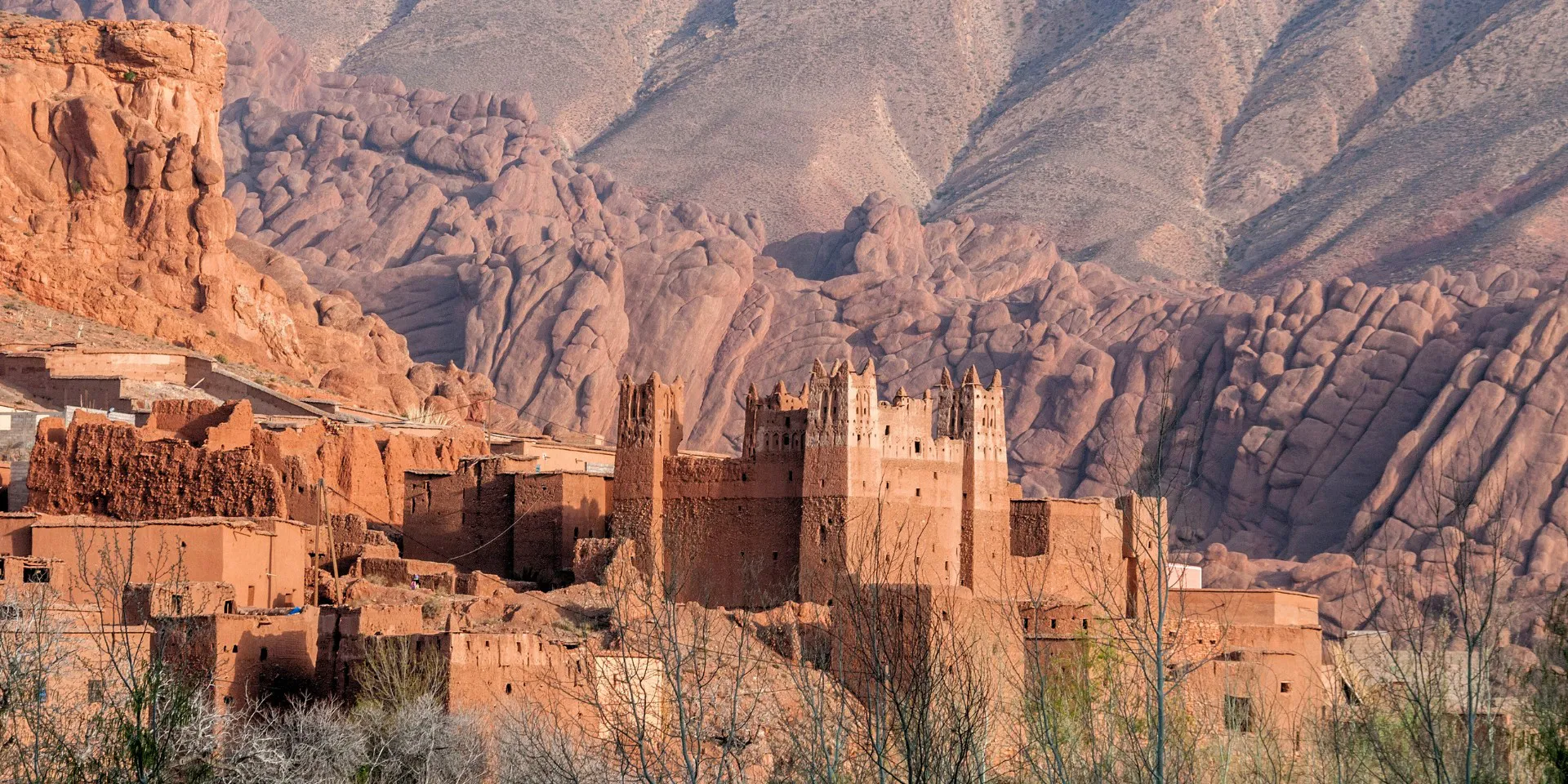 Continuamos el viaje hacia uno de los paisajes más espectaculares de Marruecos: las Gargantas del Todra. Haremos una pausa para almorzar antes de proseguir hacia Kelaa M'Gouna, un pintoresco pueblo célebre por su producción de rosas de alta calidad. Aquí comienza la famosa "Ruta de las Kasbahs", donde se erigen antiguas fortalezas de adobe con torres almenadas y adornos de ladrillo.