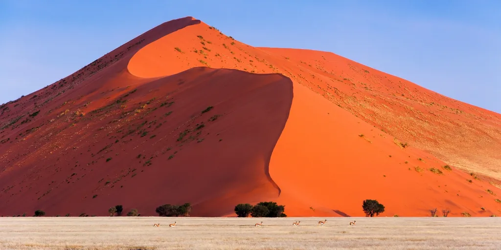 Empezaremos descubriendo las dunas de Sossusvlei y Deadvlei, que, según la luz del sol, adquieren diferentes tonalidades a lo largo del día. Durante la excursión, subiremos a una de las dunas, que llegan a alcanzar alturas de hasta 300 metros, para disfrutar de las vistas al inmenso desierto.