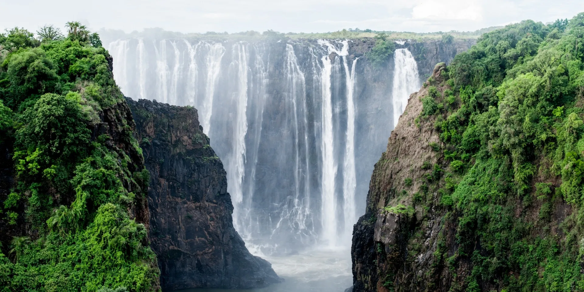 Con una caída de hasta 108 metros y una anchura 1,7 kilómetros, las cataratas caen con tanta fuerza que se puede ver la niebla y escuchar el rugido del agua hasta 50 kilómetros de distancia.