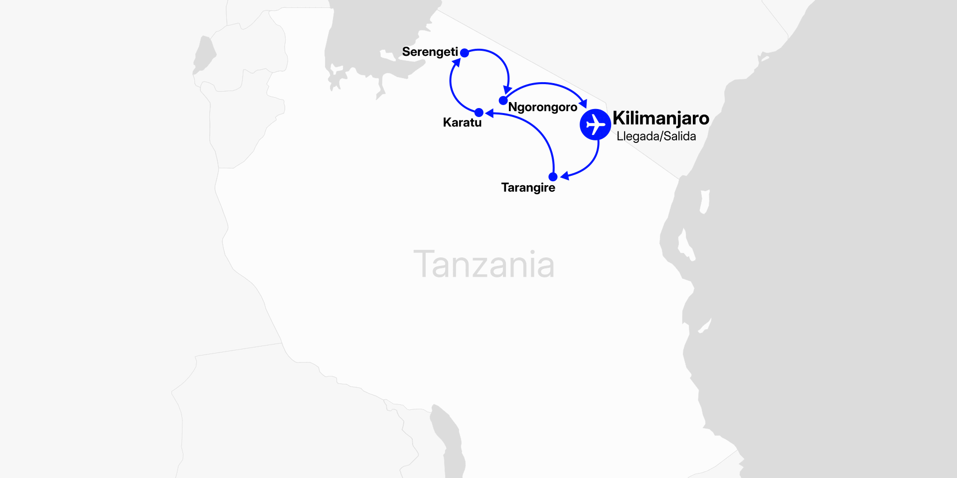 Nuestro itinerario comenzará cogiendo un vuelo desde España con destino Kilimanjaro, pasaremos la noche a bordo.