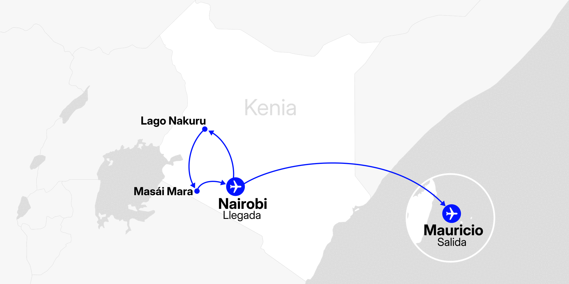 Vuelos internacionales e internos, alojamiento en categorías primera o superior, traslados, chófer de habla hispana durante los safaris en Nakuru y Masái Mara.