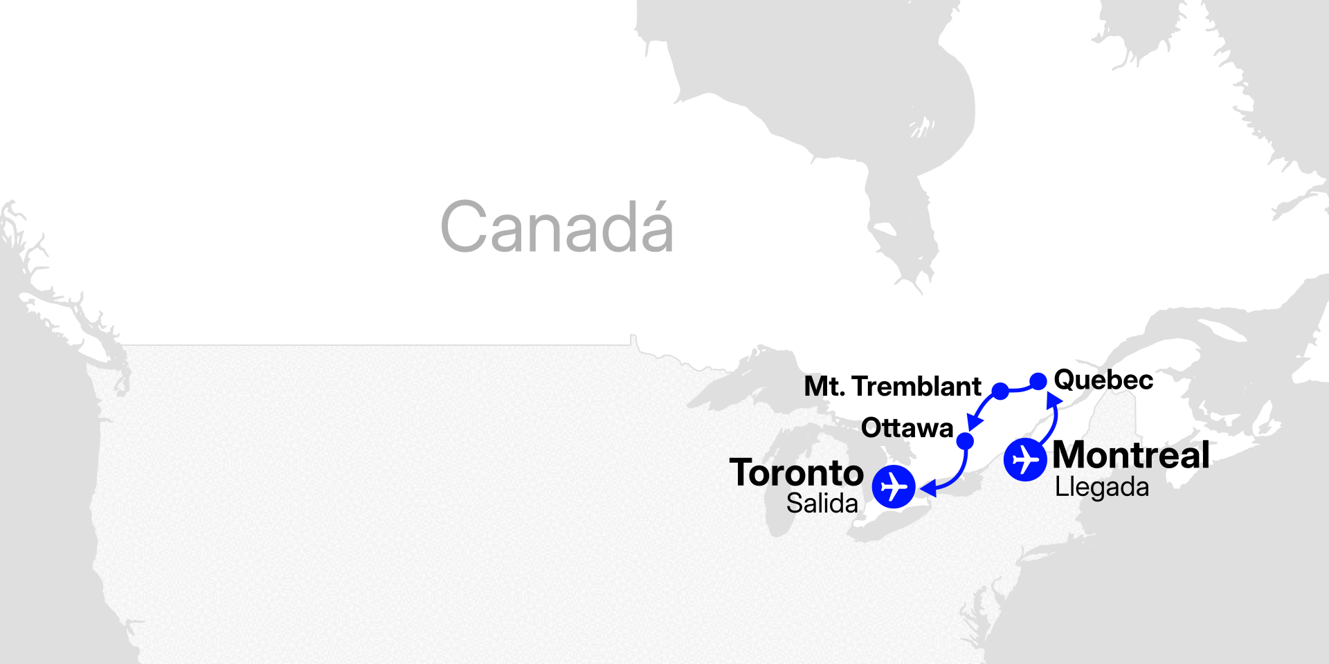 Iniciaremos nuestro viaje a Canadá con la salida en vuelo internacional.
