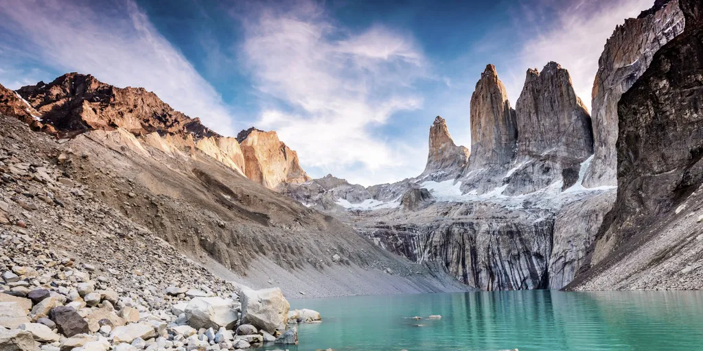 La Patagonia chilena te llevará por paisajes naturales impresionantes. Descubre, a tu propio ritmo, rutas y caminos entre montañas nevadas, lagos infinitos y enormes bosques donde solo escucharás el sonido de la naturaleza. Tu viaje a Chile comienza en Santiago, la capital, resguardada por la cordillera de los Andes. Seguirás hacia Valparaíso, una ciudad portuaria de colinas empinadas y antiguos funiculares que ascienden hasta cerros coloridos. Visita sus galerías de arte, cafés y fachadas pintorescas. Volarás hacia Punta Arenas, donde tendrás a disposición un coche para explorar a tu aire el sur de Chile. Descubre el Parque Nacional Torres del Paine, un área natural protegida donde imponentes glaciares se funden con lagos de color azul profundo, como los lagos Pehoe, Sarmiento y Grey. Finalmente, harás una excursión marítima en Puerto Natales para ver los glaciares Balmaceda y Serrano.