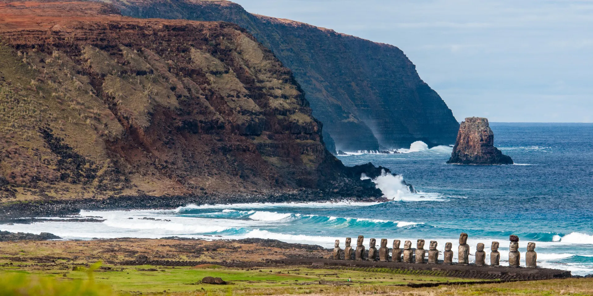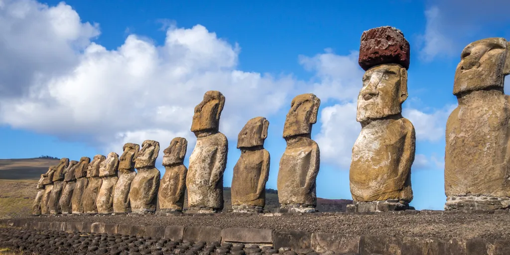 Empezaremos viendo los templos de Vaihu, un lugar rodeado de las famosas estatuas moái. También conoceremos el sitio arqueológico Akahanga, que se cree que fue uno de los primeros asentamientos de la isla. Además, visitaremos Tongariki, Te Pito Kura, Naunau, la cantera moái y el volcán Rano Raraku.