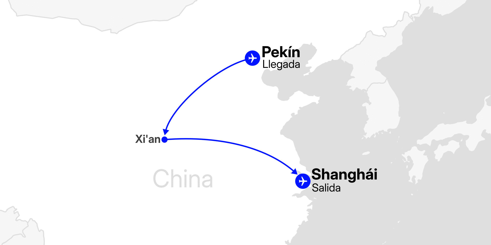 Los templos y palacios de la antigua China combinan arquitectura monumental, simbolismo espiritual y tradición milenaria. Este viaje recorre los principales tesoros de la China imperial y moderna, comenzando en Pekín, donde la historia cobra vida en la majestuosa Gran Muralla China y en la emblemática Ciudad Prohibida. También se ofrece la opción de visitar el Templo del Cielo y el Palacio de Verano, la residencia de descanso de la Dinastía Qing. En Xi’an, descubriremos el famoso ejército de Guerreros de Terracota, figuras de cerámica que permanecieron enterradas por más de dos mil años. La ruta por China concluye en Shanghái, la ciudad más dinámica del país, donde rascacielos modernos, templos antiguos y barrios coloniales conviven en un paisaje urbano único. Este recorrido es perfecto para quienes desean explorar la historia, la cultura y la modernidad de China en una sola experiencia.