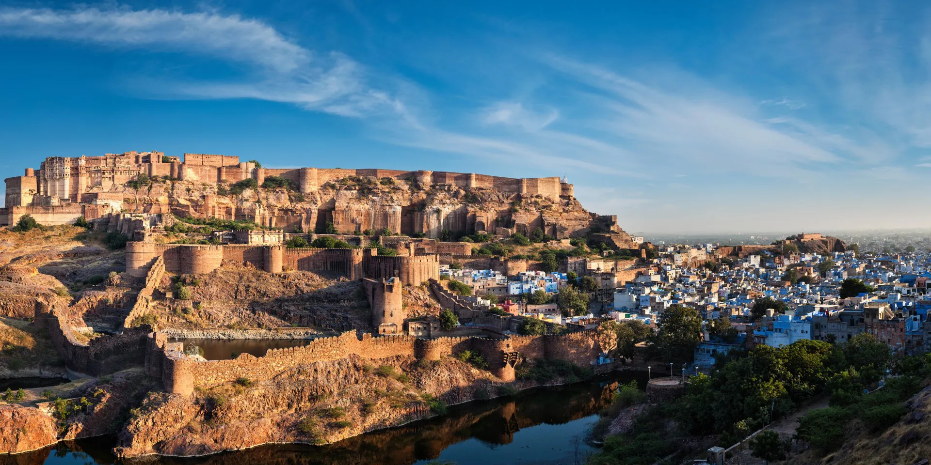 Por la mañana visitaremos la ciudad de Jodhpur. Durante el recorrido conoceremos la Fortaleza de Mehrangarh, una de las más grandes y elegantes de la India. Se ubica en una colina empinada y se extiende por más de 5 km, desde arriba tendremos fantásticas vistas de la ciudad. Dentro de este fuerte encontraremos una serie de palacios construidos por los sucesivos gobernantes, que albergan diferentes pinturas en miniatura, instrumentos musicales populares y el Jaswant Thada, el memorial de mármol blanco del maharajá Jaswant Singh.