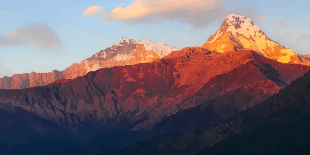 Un viaje a Nepal es adentrarse en la aventura y el misticismo de los pueblos y senderos que bordean el Himalaya. Nuestro recorrido comenzará en Katmandú, la vibrante capital, centro de la cultura y las artes tradicionales de Nepal. Enclavada en un amplio valle, Katmandú es un museo al aire libre. Sus templos dorados e hipnóticos monasterios nos envolverán en una atmósfera cautivante. Conoceremos la estupa de Bouddhanath, uno de los lugares budistas más importantes y venerados de Nepal. Continuaremos hacia Pokhara, a unos 200 kilómetros de la capital, que nos recibirá con todo su encanto natural a orillas del lago Phewa. Pokhara es el punto de partida de los excursionistas que emprenden la ruta de trekking del Annapurna. Continuaremos la ruta hacia Dhampus, atravesando frondosos bosques de pinos, ríos, puentes colgantes y aldeas pintorescas. En Ghandruk podremos disfrutar de vistas poéticas a los picos nevados como el Gangapura y el Machhapuchhre. Muy temprano, por la mañana, caminaremos hasta lo alto de la colina de Poon, a 3210 msnm., para vivir una de las experiencias más hermosas de este viaje a Nepal: contemplar el amanecer sobre la majestuosa montaña Annapurna, el corazón de la cordillera del Himalaya.