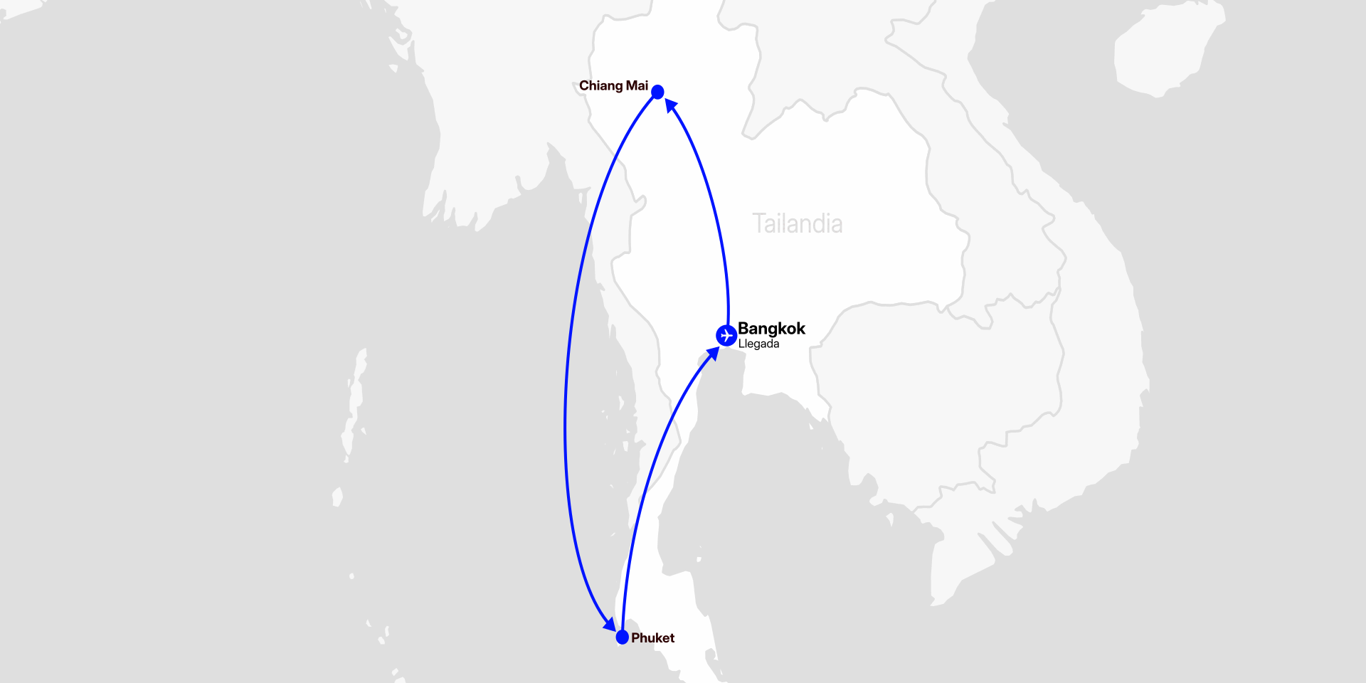 Disfruta de los encantos de Tailandia en verano sumergiéndote en las vibrantes calles de Bangkok, entre motos, rascacielos y puestos de comida callejera. Conoceremos sus majestuosos palacios y templos, entre ellos, el Wat Pho o Templo del Buda Reclinado. Después, en el norte montañoso del país, la mística y apacible Chiang Mai: rodeado de enormes murallas, su casco antiguo guarda templos budistas, casas de té y centros de masajes tradicional. Visitaremos también un campamento de elefantes en medio de la selva y una bella plantación de orquídeas. Llegaremos a lo alto de la montaña Doi Suthep y visitaremos su templo. Disfrutaremos de las magníficas vistas panorámicas de la ciudad junto con estupas doradas y figuras de Buda. En la última etapa de nuestro viaje a Tailandia nos envolverá la calma de las playas paradisíacas de Phuket, sus paisajes tropicales serán imposibles de olvidar.