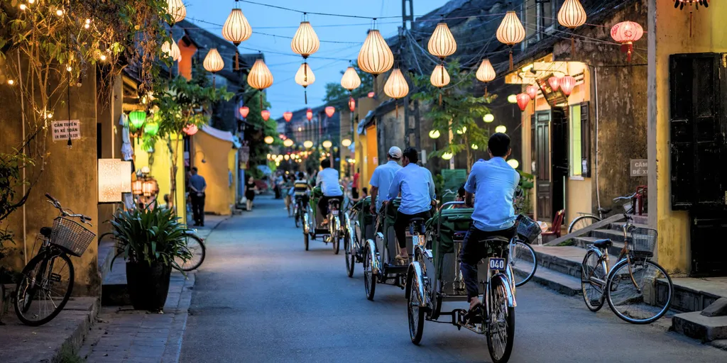 Si despertamos temprano, podremos participar en una sesión de taichí en la cubierta superior mientras el sol sale sobre los islotes. Disfrutaremos de un completo brunch a bordo antes de desembarcar entre las 10:30 h y las 11:00 h. Nos trasladaremos al aeropuerto de Hanói para tomar un vuelo con destino a Da Nang. Tras el aterrizaje, nos dirigiremos directamente a la población costera de Hoi An. Iniciaremos la estancia en el centro de Vietnam alojándonos en el hotel.