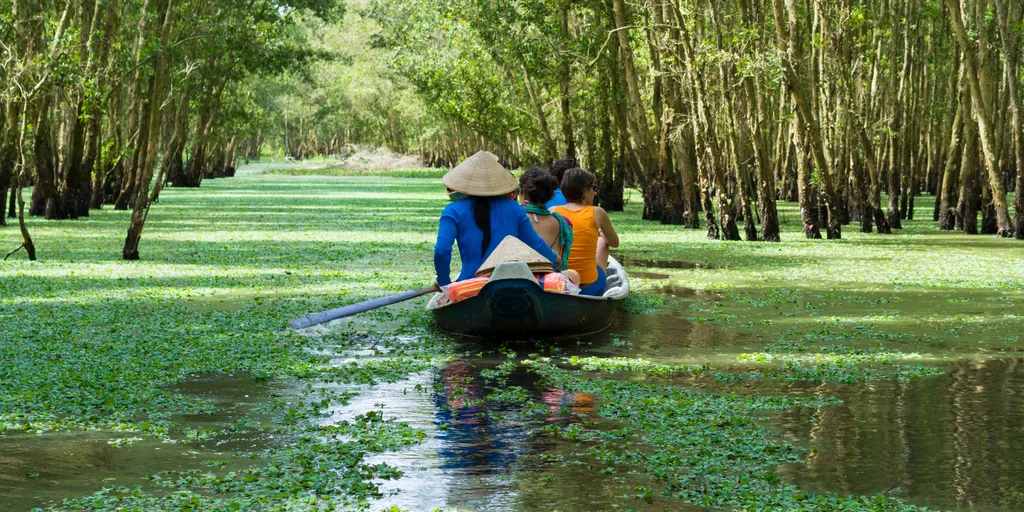 Luego, nos trasladaremos por carretera hacia el delta del río Mekong. Allí, en un barco haremos un crucero por el río, donde podremos ver la vegetación autóctona y degustar muchos productos locales como los caramelos de coco, elaborados ahí en fábricas familiares.