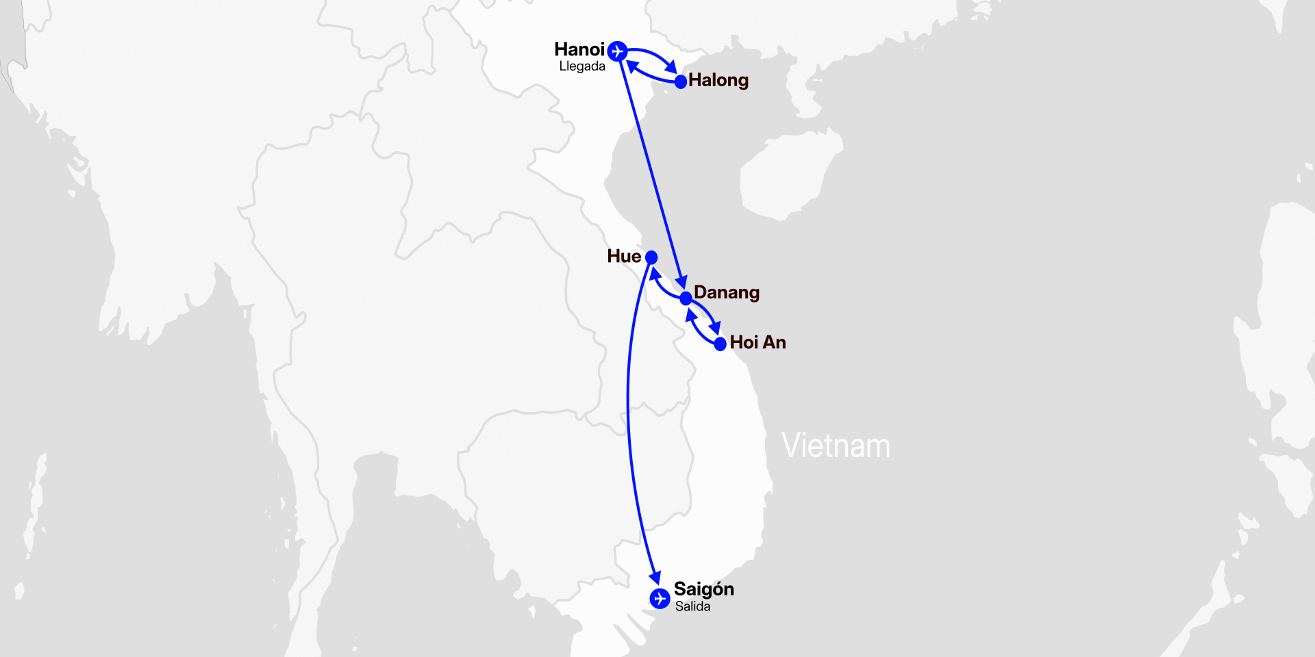 Hanói - Halong - Hanói - Da Nang - Hoi An - Hue - Ho Chi Minh (Saigón) - Can Tho - Ho Chi Minh (Saigón)
