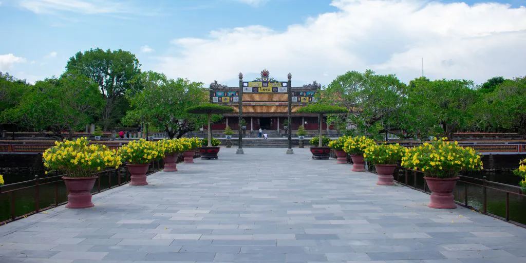 Nos dirigiriemos al centro de Hue para visitar la Ciudadela Imperial, que nos proporcionará una visión fascinante de la vida en la corte durante la Dinastía Nguyen. Alrededor de la ciudad nos encontraremos la Torre de la Bandera y la imponente Puerta Ngo Mon, donde podremos visitar el Palacio Dien Tho, lugar de residencia de la madre reina. Después, veremos el Palacio Thai Hoa, la Sala de los Mandarines y las Nueve Urnas Dinásticas.