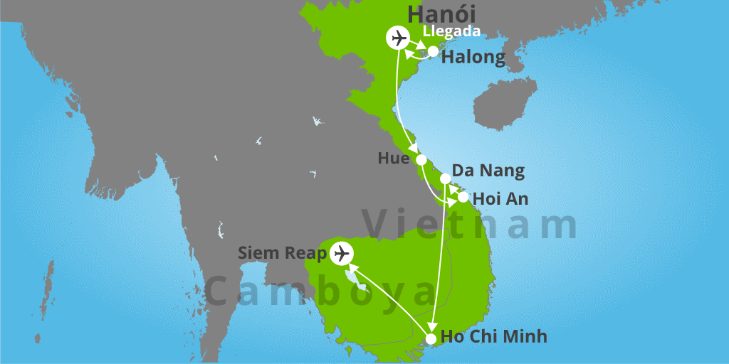 Hanói - Halong - Hanói - Hue - Hoi An - Ho Chi Minh (Saigón) - Siem Reap (Angkor)