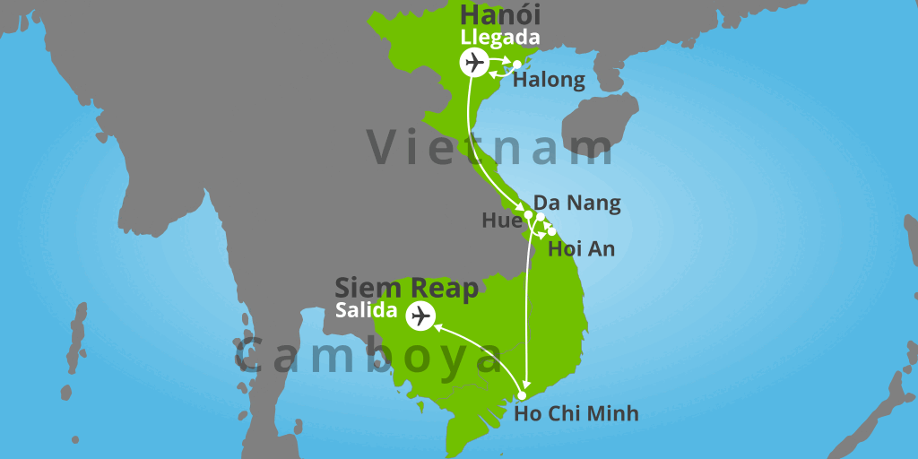 Hanói - Halong - Hanói - Hue - Hoi An - Ho Chi Minh (Saigón) - Siem Reap