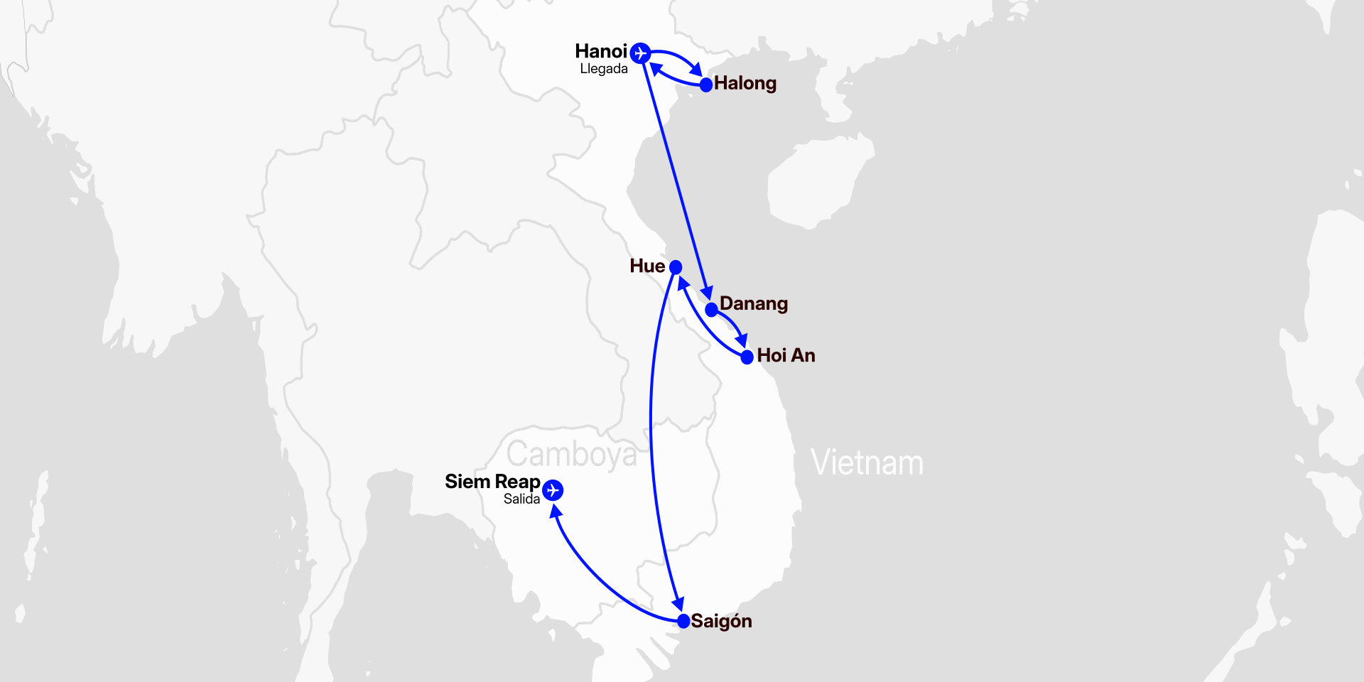 Hanói - Halong - Hanói - Hue - Hoi An - Ho Chi Minh (Saigón) - Siem Reap