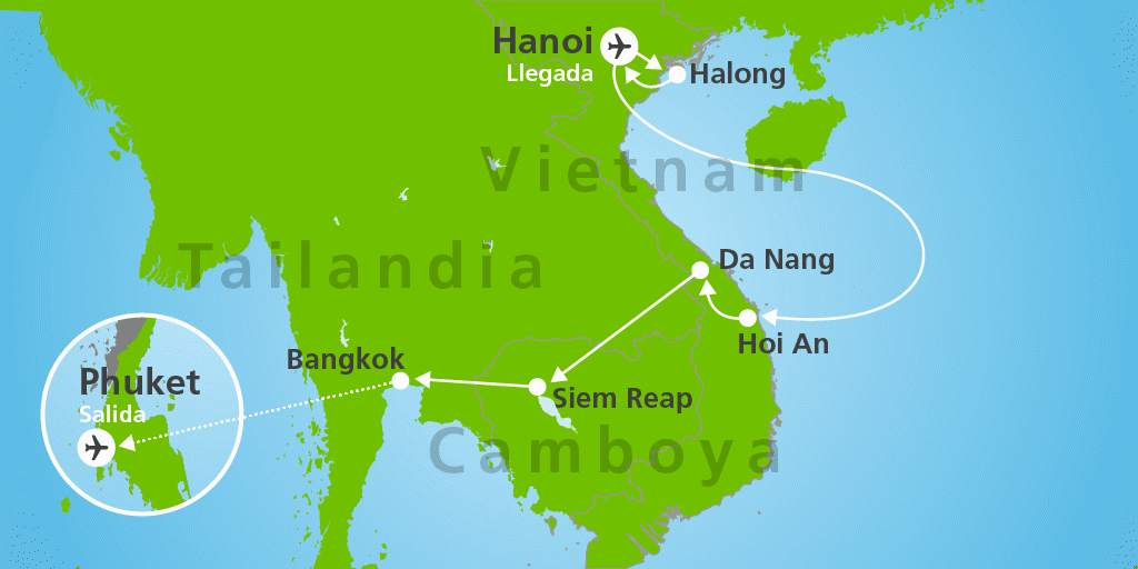 Hanói - Bahía de Halong - Hanói - Da Nang - Hoi An - Da Nang - Siem Reap - Bangkok - Phuket