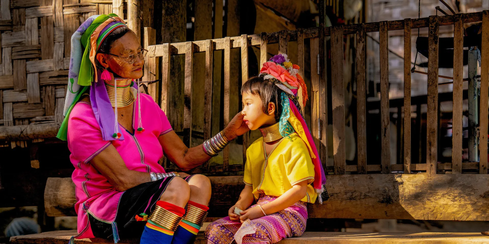 Hoy nos espera una experiencia inolvidable en medio de la selva. Por la mañana nos trasladaremos al Eco Valley, un santuario de elefantes rodeado de un entorno natural agreste, donde podremos interactuar con estos fascinantes animales dándoles de comer y caminando con ellos a través de la jungla. Podremos verlos jugar en el barro y disfrutar de un baño en el río. Luego visitaremos el lugar donde habitan diferentes grupos étnicos, entre ellos las famosas Mujeres Jirafa.