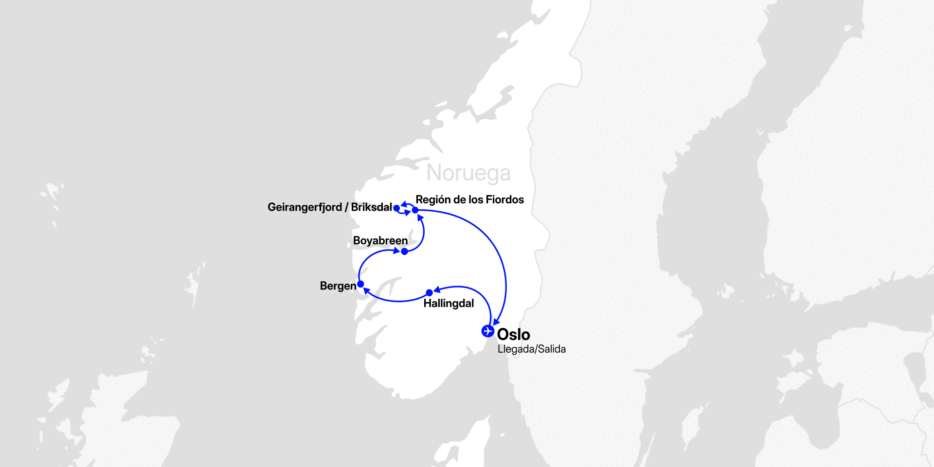 Nos trasladaremos por cuenta propia al aeropuerto de Oslo para tomar el vuelo de regreso. Al igual que el primer día, existirá la posibilidad de contratar el tren Flytoget de forma opcional.