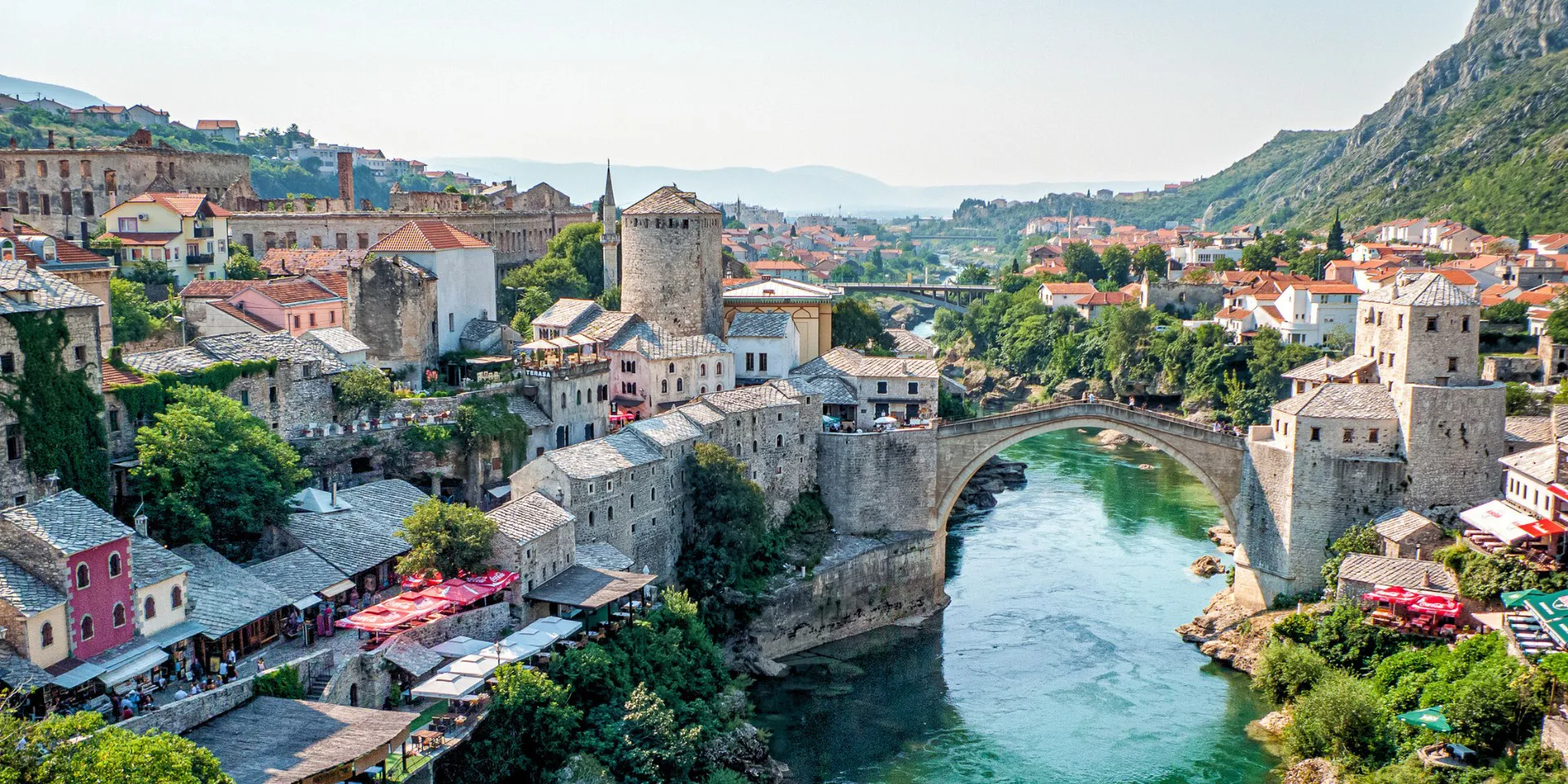 Después continuaremos nuestro viaje a través de fantásticos paisajes. Entre profundos valles viajaremos a Mostar, que destaca por su bellísimo centro histórico y su puente de piedra que separa las comunidades ortodoxa, musulmana y católica.
