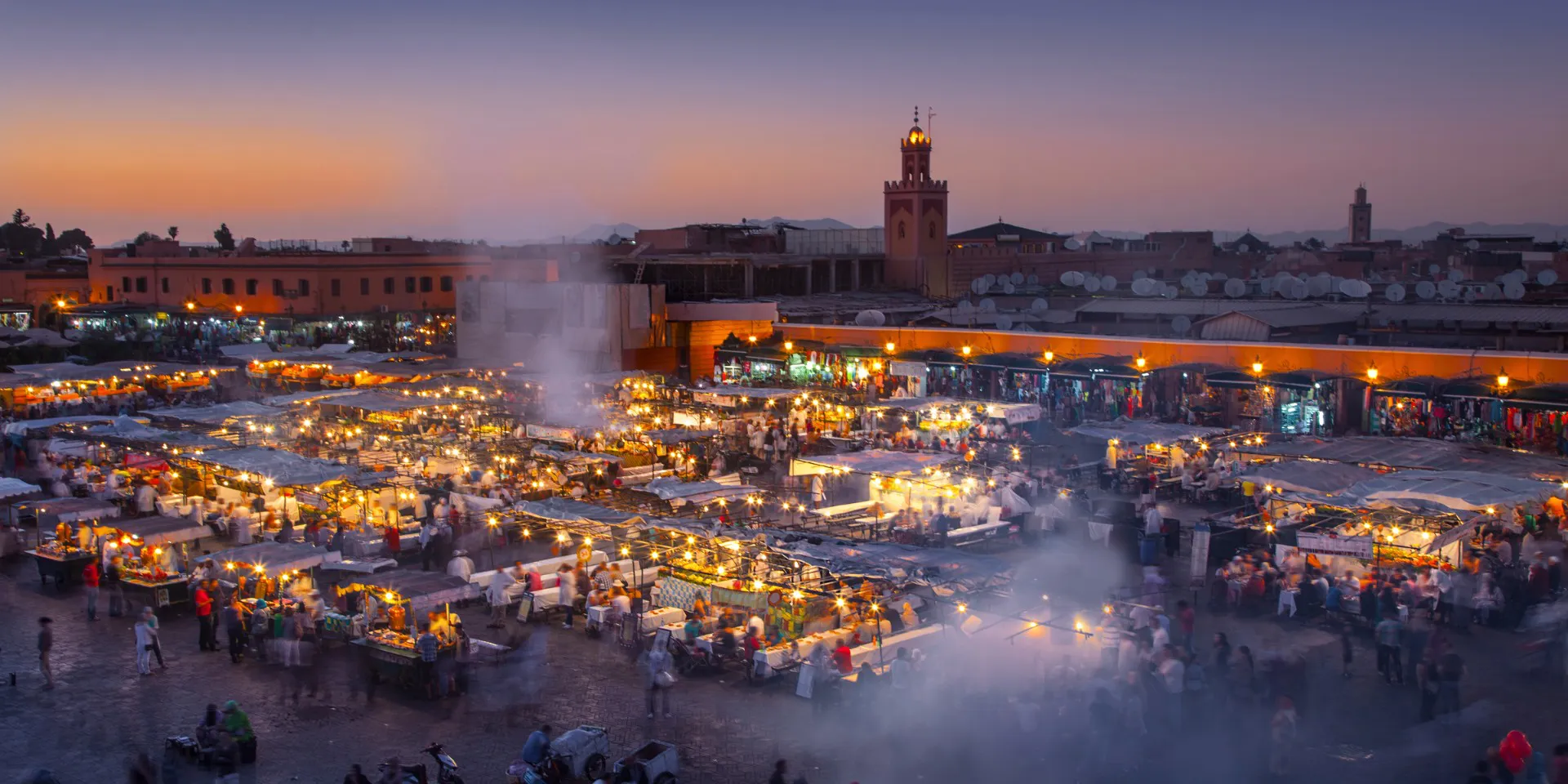 Por la mañana haremos una visita panorámica por Marrakech. Veremos sus grandes murallas, la bulliciosa Plaza de Jemaa El Fna y caminaremos por la Medina, donde los aromas y colores conquistarán nuestros sentidos. También veremos la torre de la Kutubiya, y terminaremos con una visita al Palacio de Bahía.