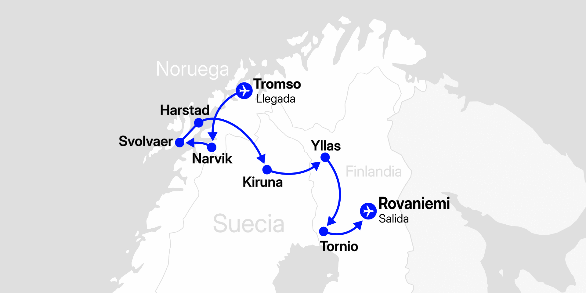 Tromso - Svolvaer - Harstad - Kiruna - Yllas - Tornio - Rovaniemi