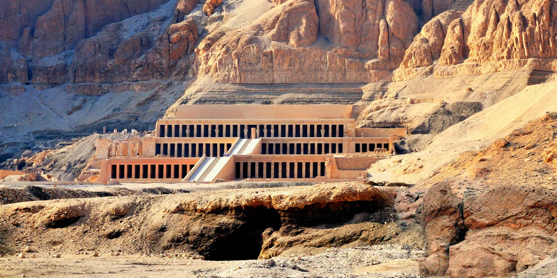 Comenzaremos la jornada en Luxor, antigua Tebas, que alberga una concentración de monumentos asombrosa. Exploraremos el Valle de los Reyes, lugar donde las dinastías del Imperio Nuevo decidieron ocultar sus tumbas abandonando la construcción de pirámides. Conoceremos el Templo de Hatshepsut (Deir el-Bahari), una construcción de terrazas imponentes que parece brotar de la roca y que alberga antiguos frescos en su interior. Saludaremos a los Colosos de Memnón, figuras de piedra de más de 15 metros de altura que actúan como guardianes del antiguo templo de Amenofis III tras resistir a más de 3400 años de inundaciones y tormentas.