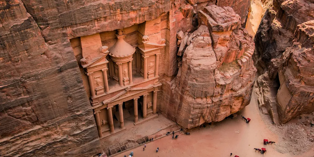 Después de desayunar, dedicaremos el día a disfrutar de la ciudad que, sin duda, hace de Jordania un lugar inolvidable: Petra, la capital de los nabateos. Pasearemos entre sus edificios tallados en piedra, como el Tesoro, la Tumba de los Obeliscos o el Monasterio, entre otros.