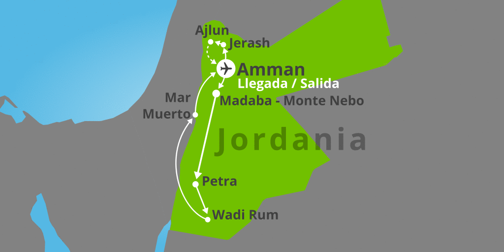 Amman - Jerash - Ajlun - Amman - Madaba - Monte Nebo - Petra - Wadi Rum - Mar Muerto - Amman