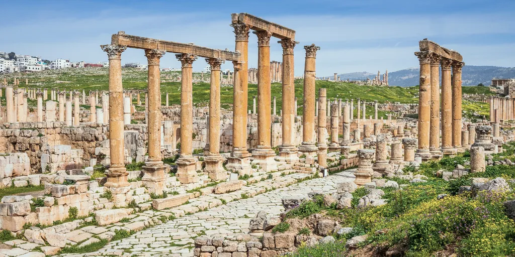 A continuación, nos dirigiremos hacia la ciudad de Gerasa, también conocida como Jerash (1 h por carretera). En esta ciudad de la Decápolis podremos ver la Puerta de Adriano, el Hipódromo, el Ágora, el cardo maximus, la Columnata, el Templo de Zeus y el de Afrodita.