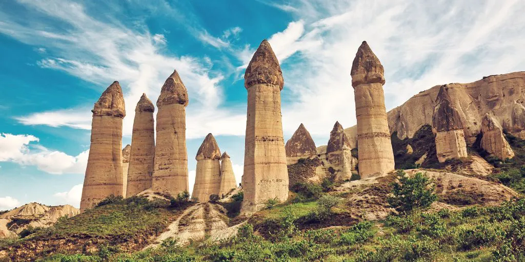 Situada en el corazón de Anatolia, cuenta con un original paisaje que parece de cuento. La zona abunda de esculturas, iglesias y hasta figuras con formas de animales talladas en roca creadas por el capricho de los volcanes Erciyes y Hasan.