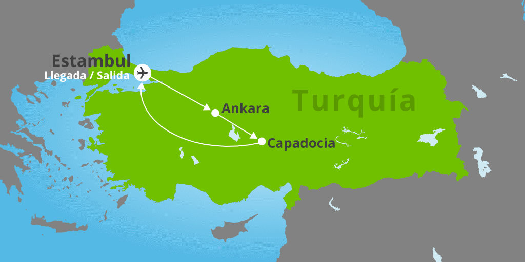 Nota: está la posibilidad de realizar el trayecto Estambul - Capadocia en avión (consultar suplemento). En este caso, no se haría la visita a Ankara y no habría almuerzo.