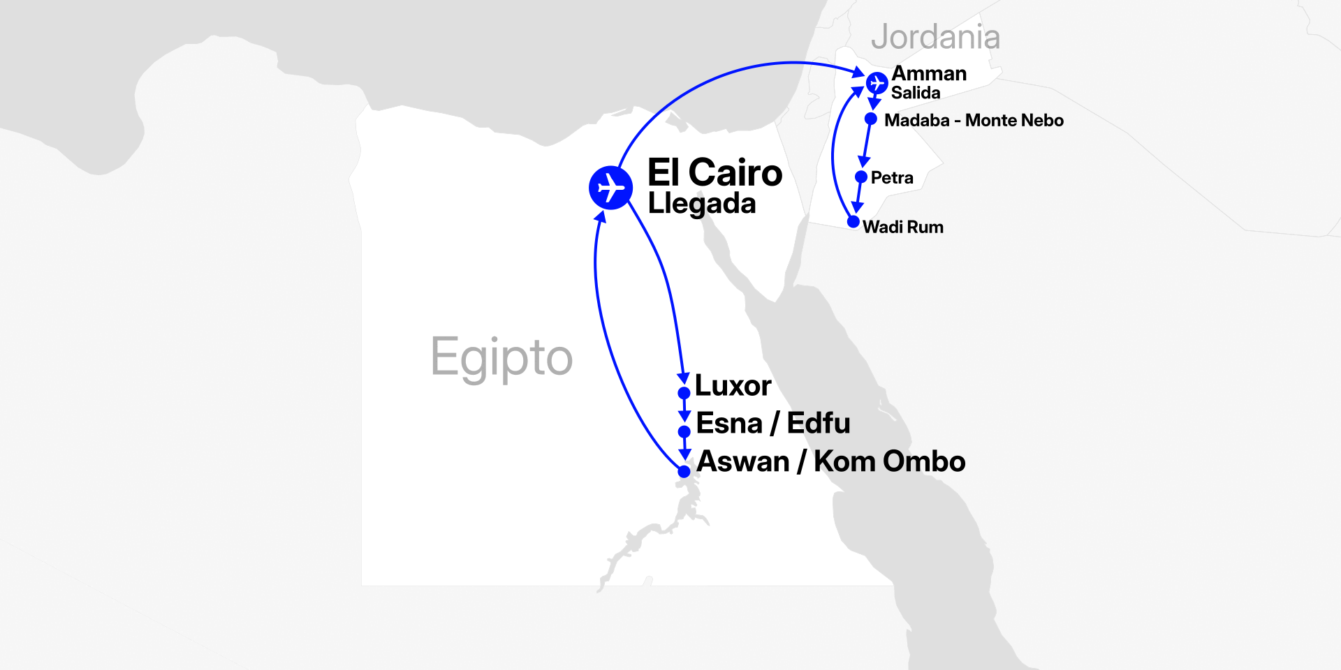 El Cairo - Aswan - Kom Ombo - Edfu - Esna - Luxor - El Cairo - Amman (Amán) - Madaba - Monte Nebo - Petra - Wadi Rum - Amman (Amán)