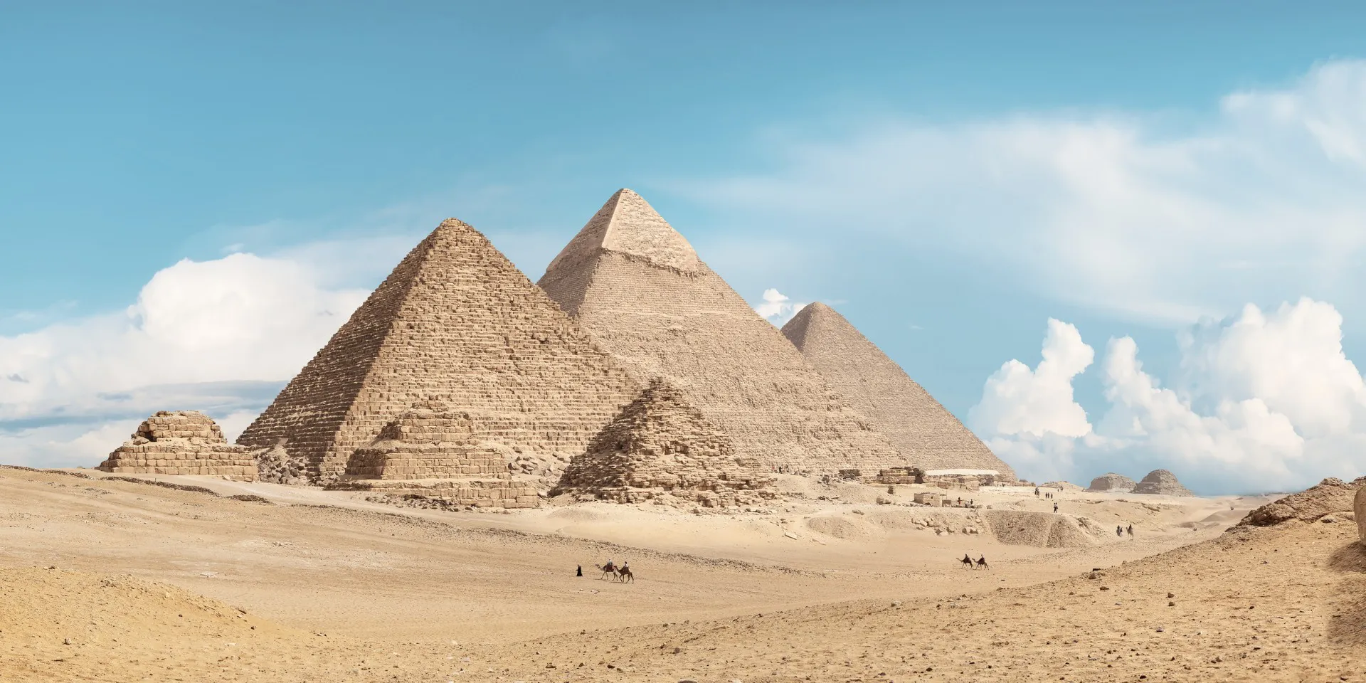 Las Pirámides de Guiza tampoco podrían faltar en nuestro viaje. Podremos disfrutar de una vista panorámica de la necrópolis, y haremos una pequeña pausa para darle una atención especial a las pirámides Khufu, Khafra y Menkaura (Keops, Kefrén y Micerinos).